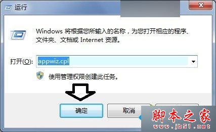 3)在开始→运行中输入:appwiz.cpl→确定;