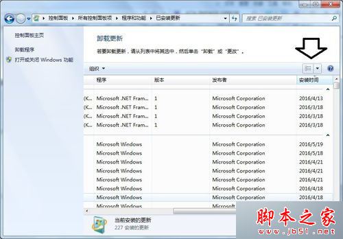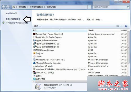 4)打开程序和功能→查看已安装的更新;