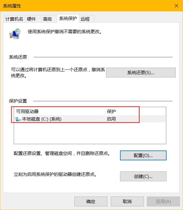 检查「系统保护」功能是否已启用