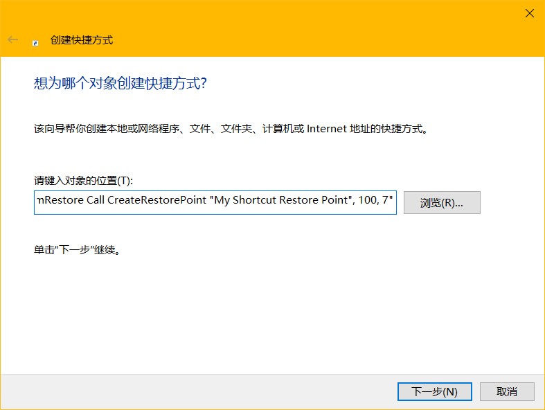 使用快捷方式创建Windows 10系统还原点