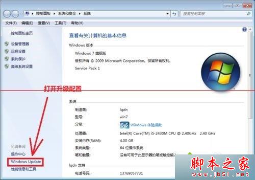 2、进行安全模式后,指向计算机机,右键属性。在左下角,打开”windows update";