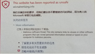 当浏览某网站时,会在后台进行分析,并确定这些网页中是否包含危险特征,如果检测到有危险的话,Smartscreen筛选器会将该站点的相关信息发送到微软的钓鱼站点中进行比较,如果列表中有该网站的话,就会在打开该网页是显示一个红色的禁止访问界面。