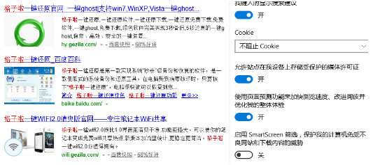 在Edge浏览器中默认是启用Smartscreen筛选器的,如果不想使用这项功能的话,可以在Edge浏览器设置菜单中的“高级设置”中关闭筛选器。如果想重新启用的话,按照上面的步骤进行操作即可。如图2所示