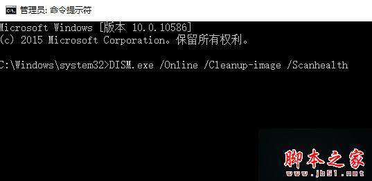 3、在命令提示符框中首先输入:DISM.exe /Online /Cleanup-image /Scanhealth 按下回车键,等待系统修复组件,接着输入:DISM.exe /Online /Cleanup-image /Restorehealth 重新修复一遍;