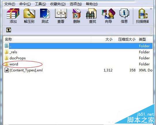 首先将“.Docx”文件后缀改成“.ZIP”,此时,文件就变成了一个压缩包,双击打开我们会看到有几个文件夹,我们打开“Word文件夹”,如下图;