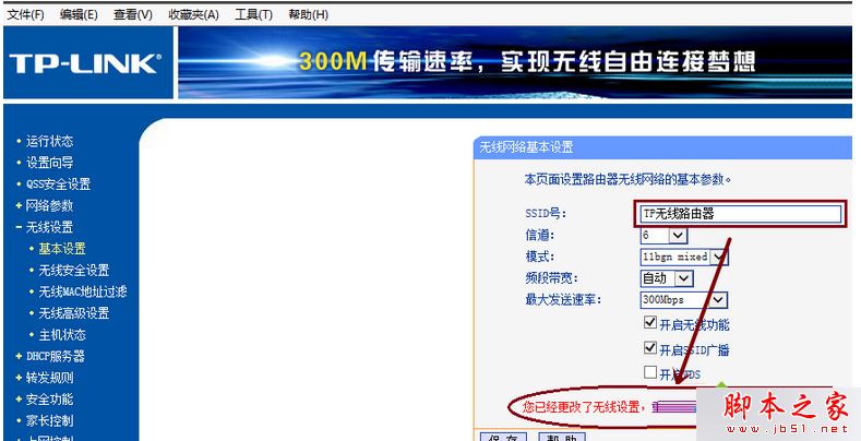 2、这里以TP-link 无线路由器为例,在左侧菜单树中点击“无线设置”—“基础设置”;