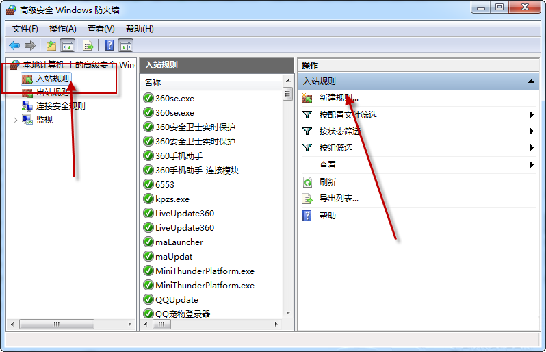 这时候,入站规则里已经有显示了,说明已成功。