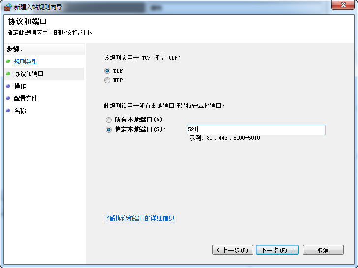 如图设置,输入你想打开的端口,如:3333,单击下一步