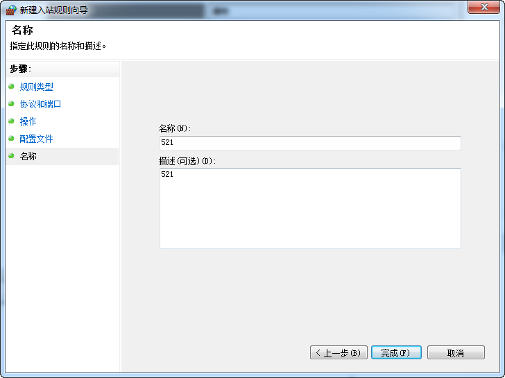 名字最好写上所打开端口的名称,方便下次寻找,点击完成