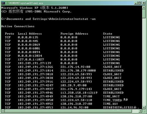 用netstat -an查看监听端口(即打开的端口)