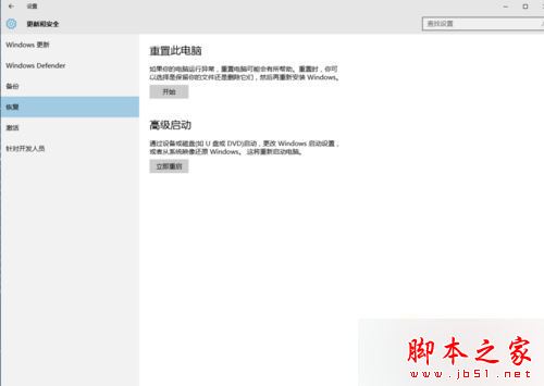 1、打开设置->更新和安全->恢复->高级启动立即重启。