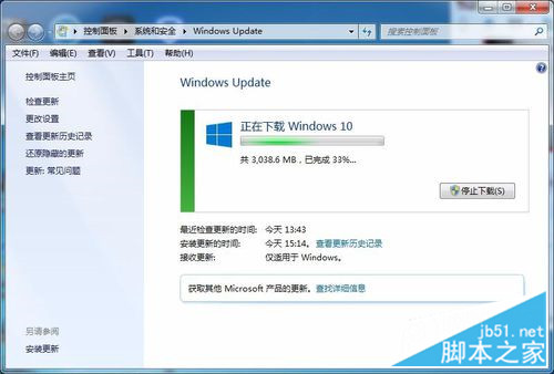 进入“Windows Update”后即可看到已经开始下载win10系统了,下载系统需要的时间会很长,要耐心等待。