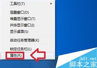 第一步,打开桌面,使用鼠标右键点击任务栏的空白处,然后选择属性。