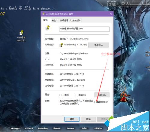 2、点击右键》属性,勾选【解除锁定】再重新打开,就可以正常显示了。