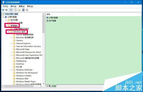 3、在组策略编辑器窗口,展开【计算机配置】-【管理模板】-【Windows组件】;