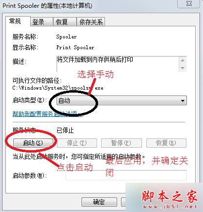 4、点击进入‘Print Spooler’属性,将自动更改为手动然后点击启动即可;