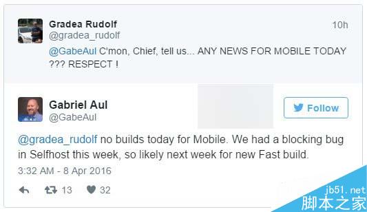 Gabe Aul今天在推特上表示:“今天没有新的Windows10移动版本,本周我们遇到了Selfhost Bug,因此新的Insider快速更新版本可能要到下周了。”