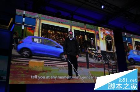 大会主题演讲结束,感谢大家! 纳德拉最后介绍了以为特殊的开发者。微软雇员Saqib在7岁时失去了视力,但他与同事合作,开发出了一款能够检测出周围物体的智能机应用。这款应用能够识别面部、性别、年龄、甚至对方的表情。科技改变生活!