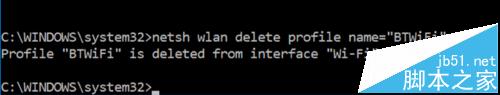 就需要执行:netsh wlan delete profile name="BTWiFi"。