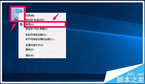 1、右键点击系统桌面计算机(XP系统:我的电脑,Windows7系统:计算机,Windows8/8.1系统:这台电脑,Windows10系统:此电脑),在右键菜单中点击:管理;
