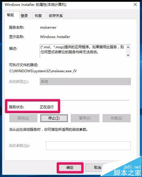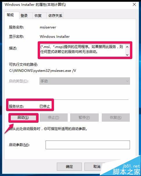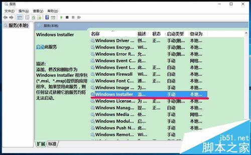 先看看Windows Installer服务项的描述:添加、修改和删除作为 Windows Installer 程序包(*.msi、*.msp)提供的应用程序。如果禁用此服务,则任何显式依赖它的服务均将无法启动。Windows Installer运行状态为:已停止,点击:启动;