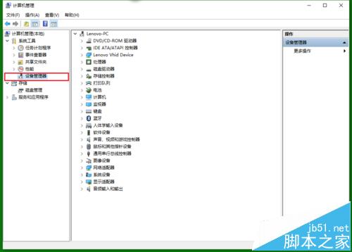 2、在新弹出的“计算机管理”窗口左边的一栏中,选择设备管理器这一项,这时右边的一栏就会出现电脑各个设备的列表。