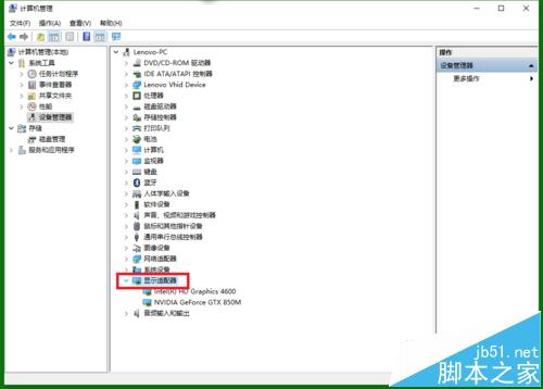 3、承上,在右边一栏的设备列表中选择打开“显示适配器”这一项,就可以找到电脑上的显卡列表。