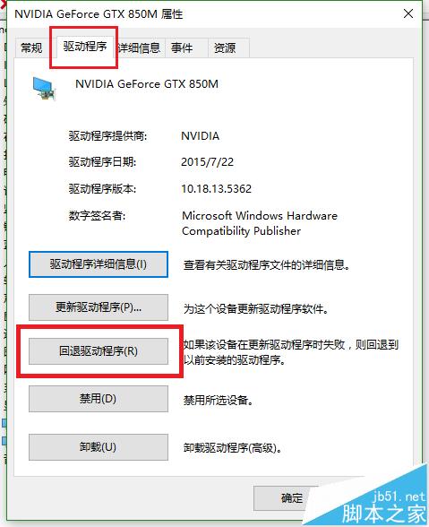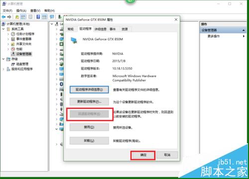 7、回退成功后,窗口中的“回退驱动程序(R)”的选项按钮就会变回不可选定的灰色,然都点选窗口右下角的确定按钮并退出。最后重启计算机就完成显卡驱动回退了咯^^。