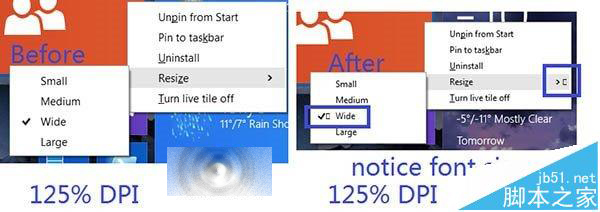 右键菜单尺寸和字体都变小,同时菜单勾选标记(√)以及二级菜单折叠标记(>)图标后面都出现了一个小黑框,看起来非常不美观。
