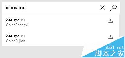 3、由于微软对邮政编码支持太少,大多地区无法搜索到结果。如下可搜索到个别区县天气。保持本地天气可设置如下即可。