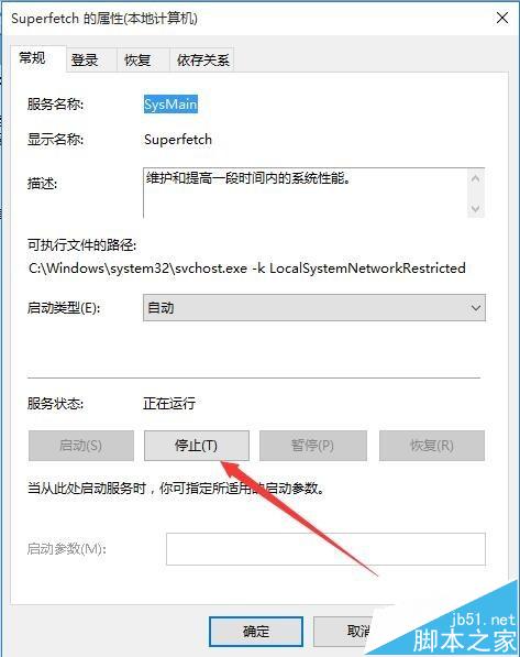4、双击superfetch服务,打开superfetch的属性窗口,点击“停止”按钮,这样就关闭superfetch服务了