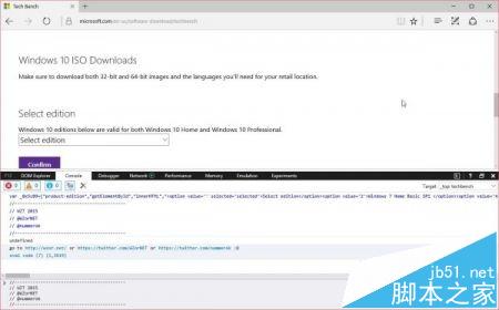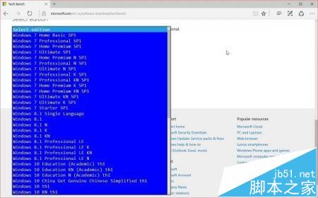 脚本之家讯 为了方便Win7、Win8.1老用户升级Win10,微软推出了Tech Bench升级计划,并在官方网站中提供了Windows10系统的ISO镜像下载,但如果用户升级Win10出现了问题,想重新安装之前的版本就有点麻烦了。其实在Tech Bench中微软同样提供了Win7、Win8.1等旧版本镜像下载(确切说是服务器中同样存在这些镜像),只不过在Tech Bench页面的Option下拉式选择表单中没有列出这些旧版本镜像。