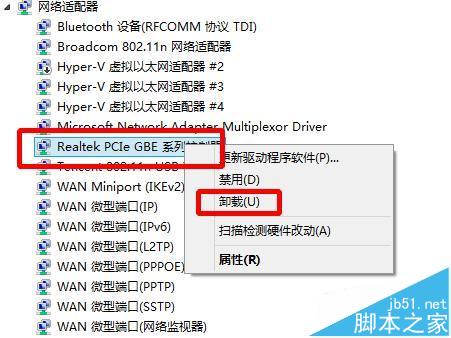 3、找到网络适配器,将其卸载(如果不知道那个,全部卸载也没问题),然后重启电脑?