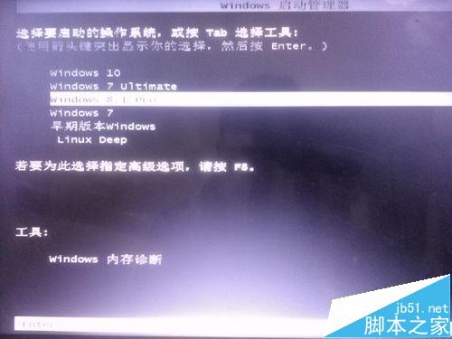 5、在启动菜单,选择系统(单系统就不用了),按下F8键。
