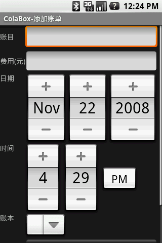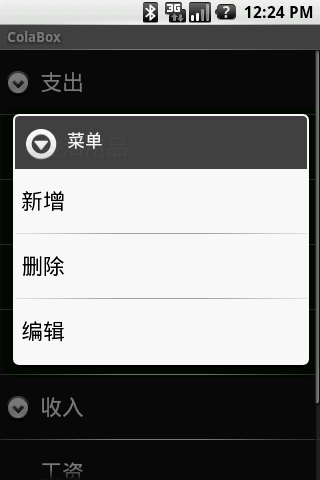 ColaBox 登记收支记录终于进入了复杂阶段了。这个界面我也是查找了很多资料以及打开android的源代码看了后才完成了,现在想来Google的开源真是明智的啊。
