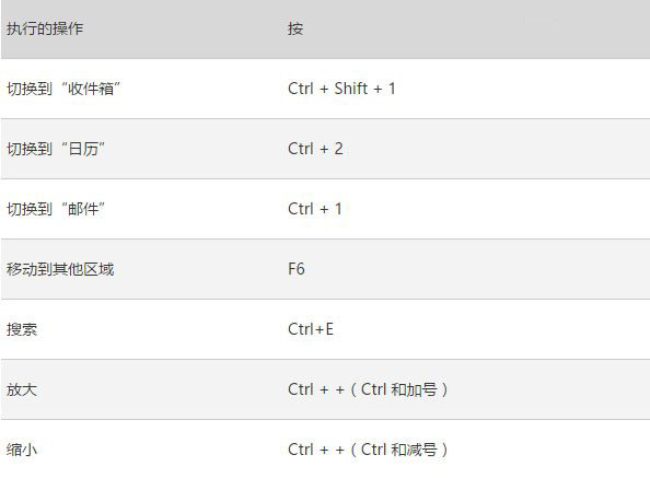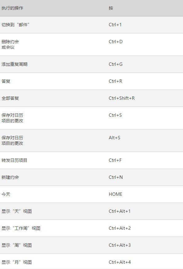 Win10版《Outlook邮件和日历》键盘快捷键大全