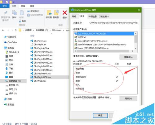 4、就需要更改文件的权限,点击右键属性ChsPinyinUDP.lex,将权限更改为完全控制。