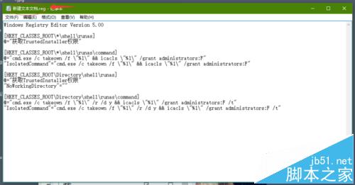保存为.reg文件后双击导入注册表就会获取Trustedinstaller 完全权限,右键发现多了一个选项