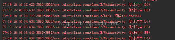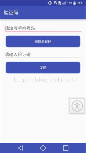 二、接下来就开始写客户端的代码了,之前写了一片关于跨界面倒计时的文章,(链接:跨界面倒计时,再也不怕倒计时过程中Activity被销毁了)今天就用那个程序来接着完成这次的验证码,哈哈哈,我是不是很懒呢。。。。不过其实布局也很简单,关键是下面。