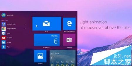 开始菜单和开始屏幕都在这则概念视频中被改进了,它们被增加了鼠标悬浮的全新视觉效果,而任务栏现在也可以定制透明度了;与此同时,当你把鼠标悬浮在其他图标上时,它们也会显示类似的效果。