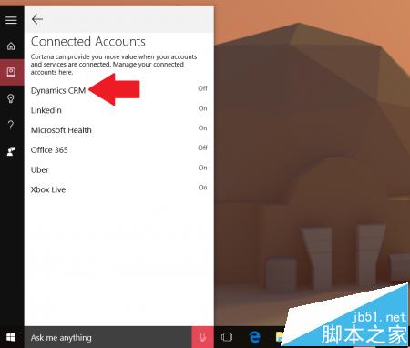 动态CRM标志着第六种可以链接到Cortana上的账户,以下则是其余可链接到Cortana上的账户: