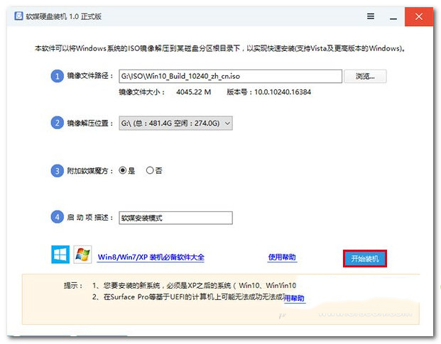 - 使用软媒魔方的“硬盘装机”工具(点击下载)进行快速硬盘安装