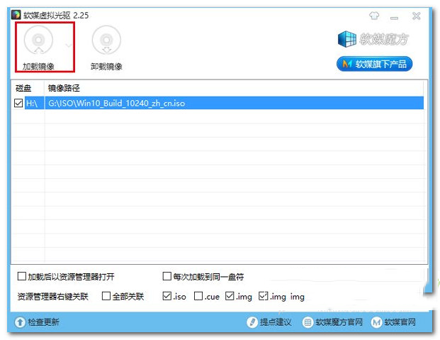 Win7/Win8.1用户可执行升级安装,加载Win10镜像可利用软媒魔方的虚拟光驱工具(点击下载)