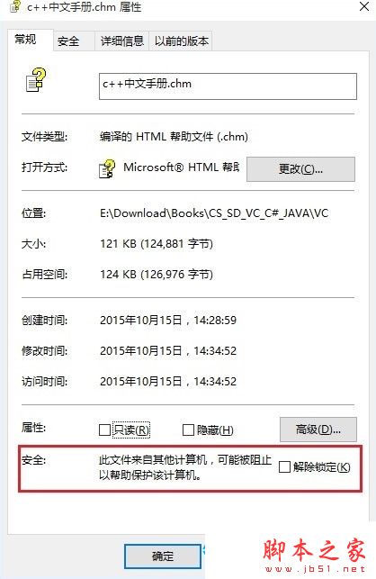 1、右键点击电子书文件选择“属性”检查文件属性里最下面是否有个“解除锁定”,如有,点击“解除锁定”按钮就可以了。如下图: