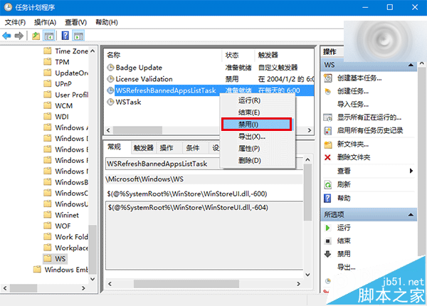 4、找到WSRefreshBannedAppsListTask,在名称上点击右键选择“禁用”(如上图)