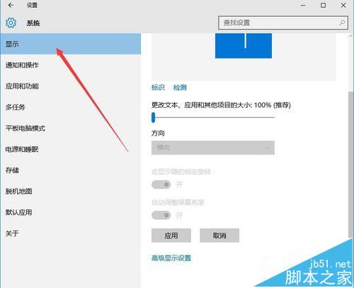 2、在打开的系统设置窗口中,点击左侧的“显示”标签