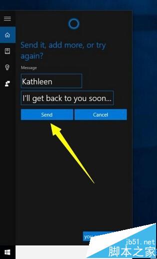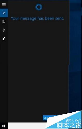 7、待手机发送文本短信内容成功后,Win10PC端Cortana将显示“发送消息成功”的提示。