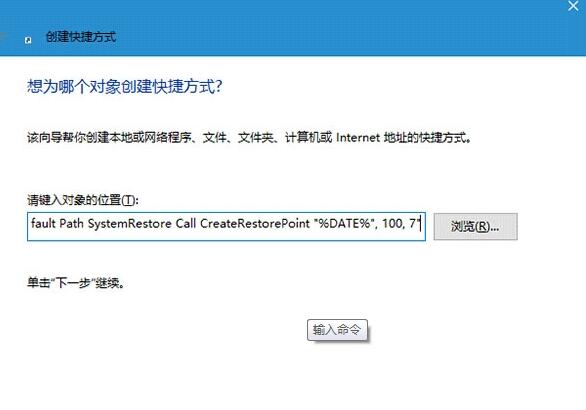 复制代码代码如下: cmd.exe /k "Wmic.exe /Namespace:\rootdefault Path SystemRestore Call CreateRestorePoint "%DATE%", 100, 7"