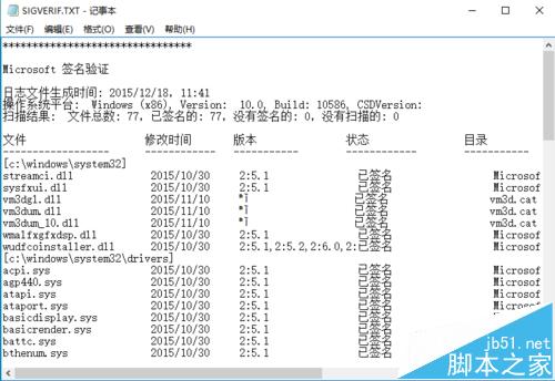 7、这时,将会打开验证日志,内含被扫描的文件列表和扫描结果。