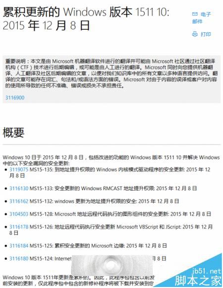 根据官方支持网站所提供的更新日志显示主要包含5项安全更新和针对微软Edge浏览器和IE浏览器的累积安全更新,在安装该累积更新之后系统版本号升级为10586.29。
